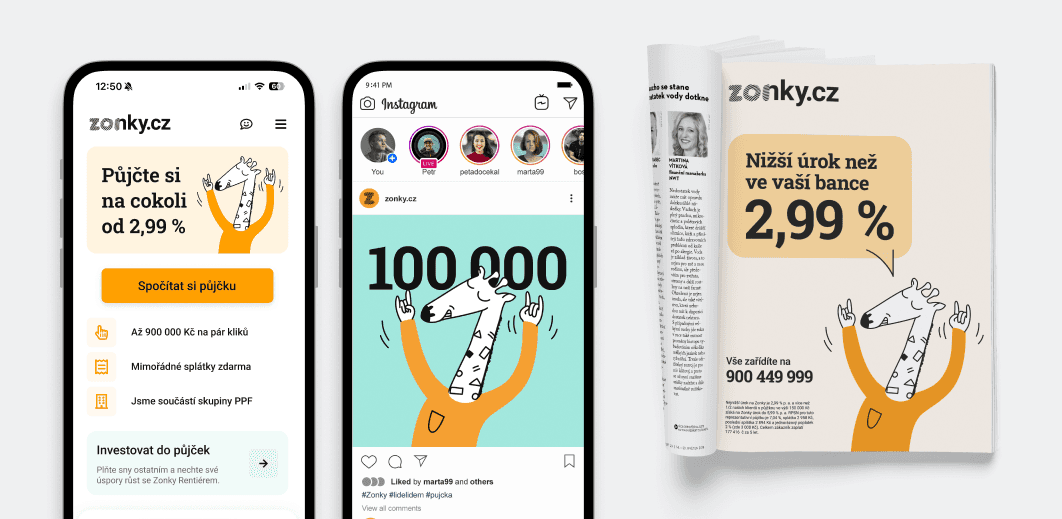 Led a full Zonky redesign, including visual refresh, product UI, and marketing foundations